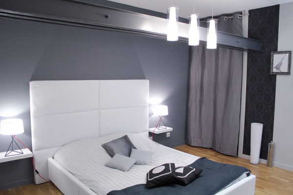 Shades of black, gray, and blue are often found in modern men's bedrooms.